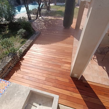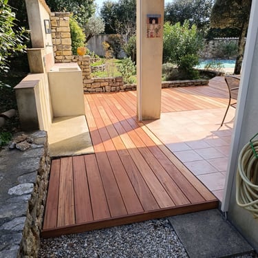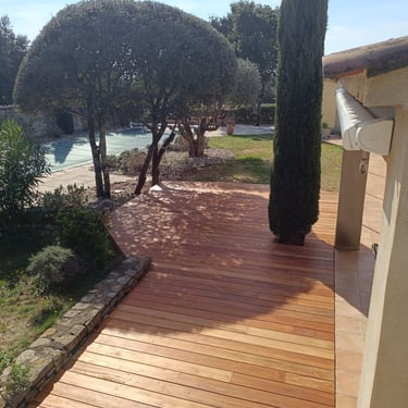 Un chantier de terrasse bois exotique a Saint Siffret (30) en muiracatiara de 42m²